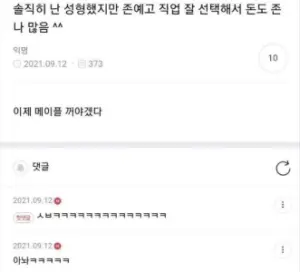 솔직히 난 성형했지만 존예고 직업 잘 선택해서 돈도 존나 많