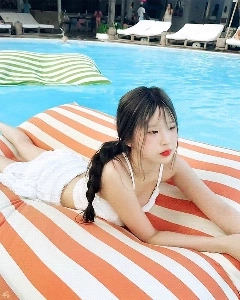 프로미스나인 송하영 흰나시 파란 수영복 얼빡샷