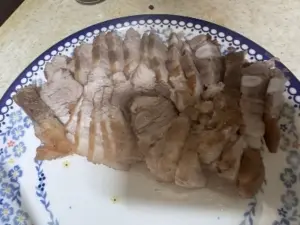 구워서 만든 수육 먹습니다.