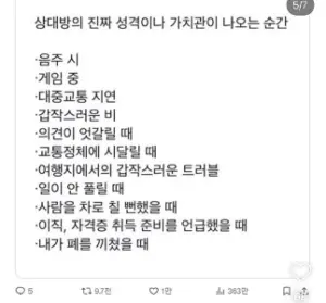 상대방의 진짜 성격이나 가치관이 나오는 순간