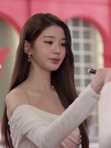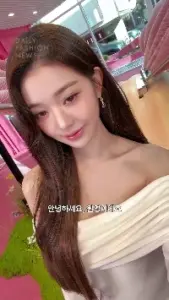살짝 위에서 찍은 아이브 리즈.화이트 튜브탑 역대급 가슴골 노출