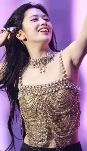 밑에서 찍은 황금 란제리룩 안유진 찰랑이는 생머리와 꿀벅지