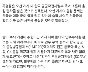오산 기지 압수수색은 미군측에 사전통보 없었다는 기사