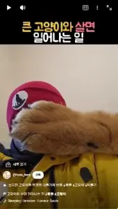 물고기한테 앞발을 물린 고양이