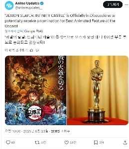 귀멸의 칼날 아카데미 장편 애니메이션 후보 유력