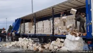 국경 도로에서 스페인 와인 불태우는 프랑스 양조업자들