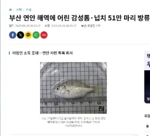 부산 연안 해역에 어린 감성돔·넙치 51만 마리 방류