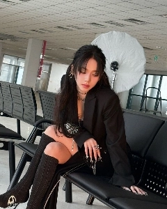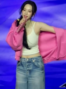 에스파 카리나 인스타 핑크 모자 블랙 나시 겨드랑이