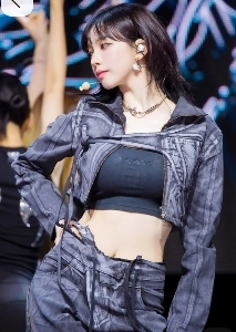 데님 끈나시 배꼽 + 검정핫팬츠 탄탄한 엉벅지 에스파 카리나