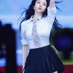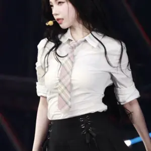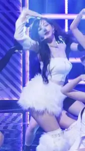 (SOUND)에스파 카리나 묵직한 흰 교복셔츠 + 검정 오버니삭스 허벅지
