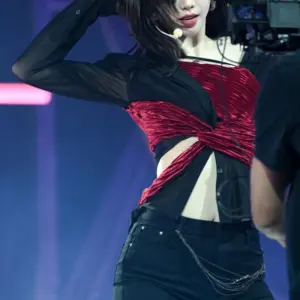 (SOUND)자주색 반짝이 탱크탑 트임 초미니 에스파 카리나 찰벅지