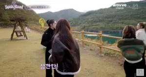 걸어가는 에스파 카리나 엉태