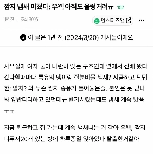 짬지 냄새 심하게 나는 여직원