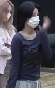 연습실의 에스파 닝닝 검은 브라끈이 보이는 봉긋한 민소매 + 배꼽