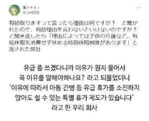 연차 쓸거면 이유 말해달라는 회사. jpg