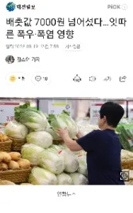 배춧값 7000원 넘어섰다…잇따른 폭우·폭염 영향