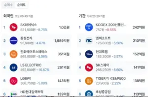 주식)외국인 하이닉스만 1조매도중