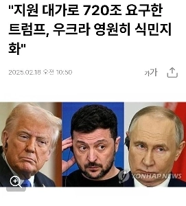 지원 대가로 720조원 요구한 트럼프, 우크라 영원히 식민지화