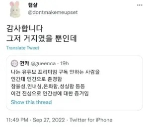 유튜브 프리미엄 안쓰는사람들 존경함