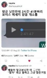남친한테 온 2시간짜리 음성메세지.
