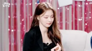 봉긋한 빨간 크롭티 + 옆트임 청미니 허벅지 프로미스나인 이나경