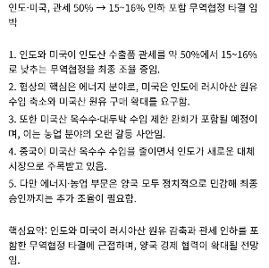 [속보] 인도, 미국과 관세 15% 협상 임박