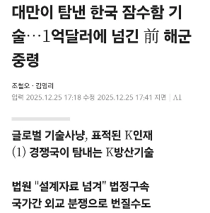 대만에 한국 잠수함 기술 넘긴.전 해군 중령