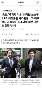 속보]”세기의 이혼” 최태원-노소영 1.4조 재산분할 파기환송…”노태우 비자금 300억” 노소영의 재산 기여로 인정 안 해