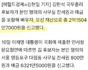 김민석총리 후보 재산