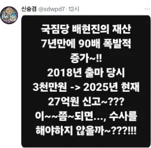배현진 재산 27억 아닙니다