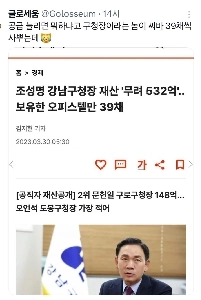 강남구청장, 오피스텔만 39채재산 532억