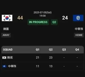 존스컵 대만전 전반종료 44 대 24
