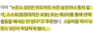 뉴진스 소송비용 전원 부담