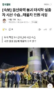[속보] 울산화력 붕괴 마지막 실종자 시신 수습…매몰자 전원 사망