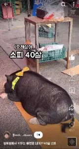 정육점 앞의 애완돼지