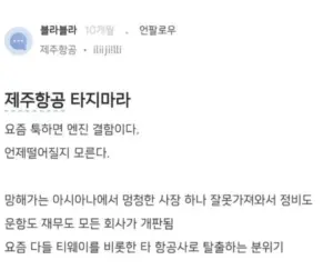 올해초 “”””제주항공 타지마세요”””” 현직자 경고