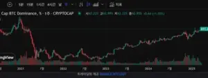 비트코인 도미 보면 주봉으로 보면 추세가 꺽인적이 없었네요