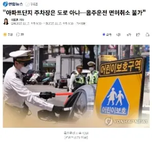“”””아파트단지 주차장은 도로 아냐…음주운전 면허취소 불가””””