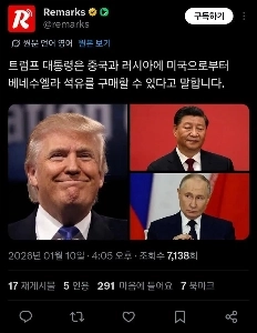 트럼프대통령 중국 러시아에 베네수엘라 석유 판매한다