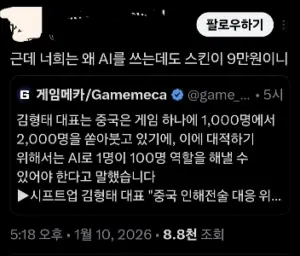 김형태 : 중국 인해전술에 AI 로 대응해야 한다!!!
