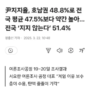 尹지지율, 호남권 48.8%로 전국 평균 47.5%보다 약간 높아…전국 ‘지지 않는다’ 51.4%