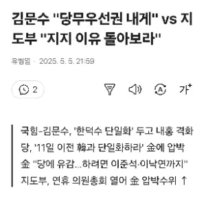 김문수 “”””당무우선권 내게”””” vs 지도부 “”””지지 이유 돌아보라””””