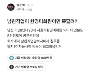 사람 직업 따지면서 사귀는 남자친구