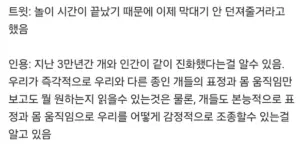 개와 인간이 3만년동안 같이 진화했다는 증거.