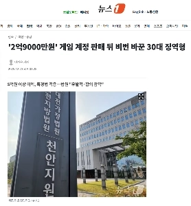 ‘2억9000만원’ 게임 계정 판매 뒤 비번 바꾼 30대 징역형