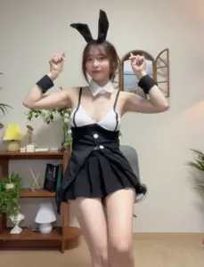 BJ 짜미 검정 레이스 바니걸 의상 검스 야벅지 몸매