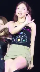 아래에서 본 짧은 치마 콜플콘 트와이스 나연