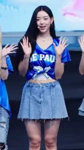 트리플에스 채연 폭력적인 파란 크롭티 가슴라인