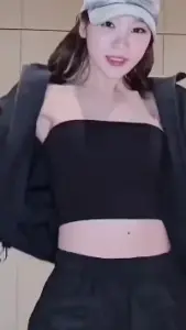 르세라핌 채원 블랙 튜브탑 가슴골