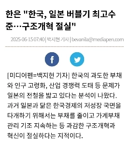 한은 “”””한국, 일본 버블기 최고수준…구조개혁 절실””””